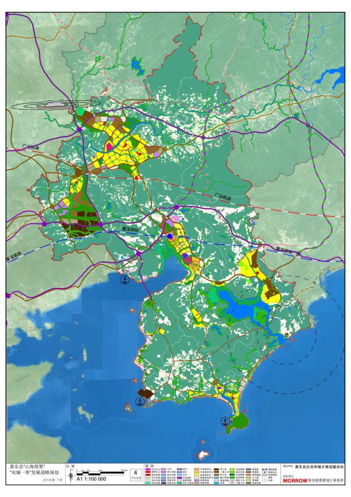 MORROW was appointed by the client to develop a Strategic Master Plan for Huidong County, and to carry out a detailed master plan and urban design for the double crescent bay area at the southern tip of Huidong County Peninsula. Located in the port town of Huidong, Double Crescent Bay is famous for its peculiar sea views. The aerial view of the bay resembles two new crescent moons, with Pinghai and Daya Bays on one side, and Honghai Bay on the other, similar with Hakodate City in Hokkaido, Japan.